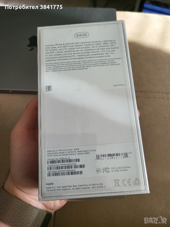 Iphone 8 silver 64GB нов, фабрично запечатан, рядък → Обява 54137279
