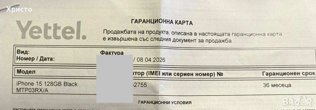 Телефонът е чисто нов, неразпечатан и никога не е използван. Кутията не е отваряна – устройството е в напълно фабрично състояние. Закупен е на 08.04.2026 г. и има валидна гаранция от 36 месеца. Работи с всички оператори и е напълно отключен. Към телефона има подарък оригинален адаптер на Apple.