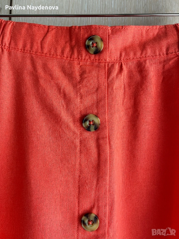 ❤️Здравейте! Продавам нова пола, без хартиен етикет, размер М. Състав 45% лен, 55% вискоза, с ластик в талията. Копчетата не се разкопчават. Цена 10€