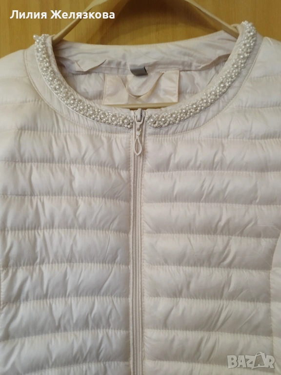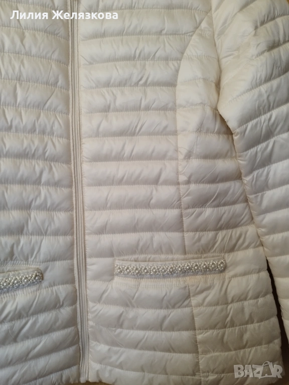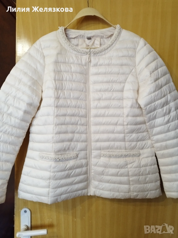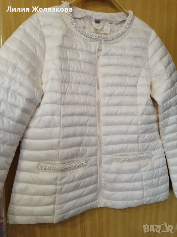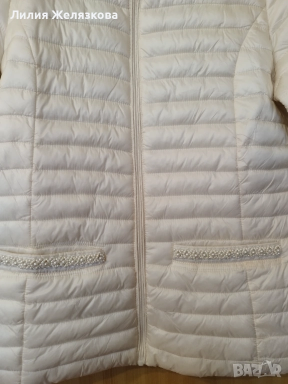 Свежо пролетно яке с перли,цвят екрю, гр обиколка 52 см,дължина 63 см.