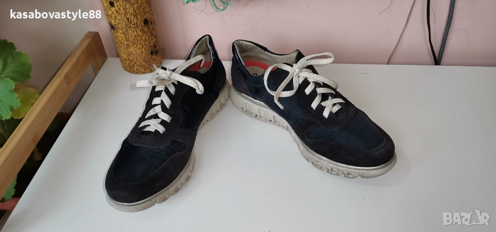 Дамски спортни обувки от испанската марка Callaghan В отлично състояние!! Те са с технология аdaptactiоn осигурявайки омекотяване при стъпване, комфорт и лекота при движение. Ултра леки и гъвкави. Горната част е изработена от естествен велур и текстил, а вътрешността е изцяло от естесвена кожа. Връзките на модела са еластични и много удобни за ползване. Дължина на стелка 24.3см.Ходило 3см.Цялостна височина отзад 9.5см.