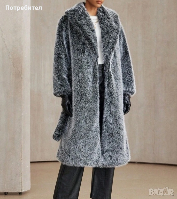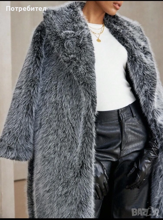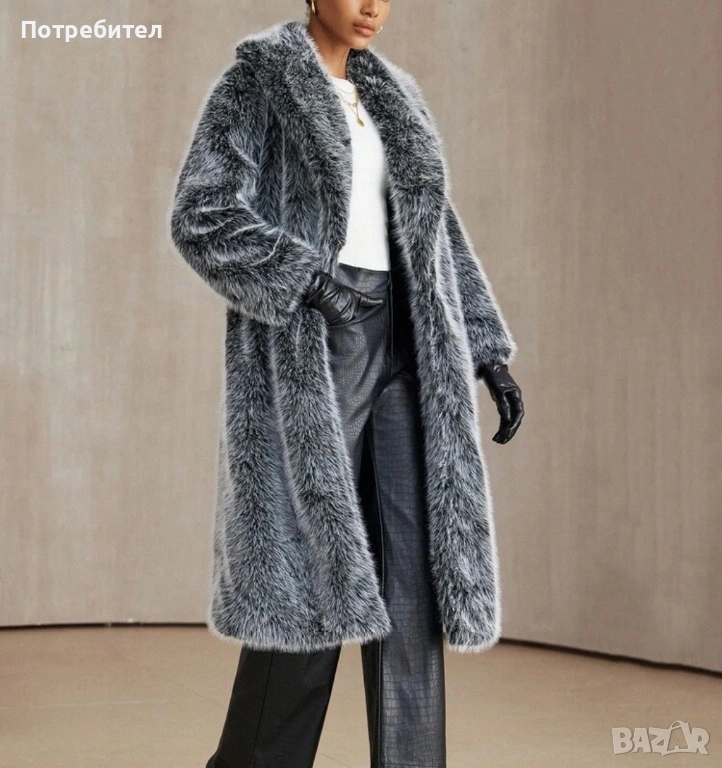 Двуцветно дълго палто от изкуствен косъм → Обява 54137797