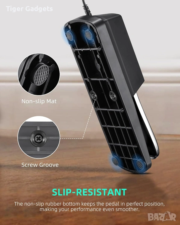Здравата конструкция и неплъзгащата се основа осигуряват стабилност и комфорт по време на свирене.