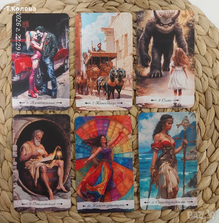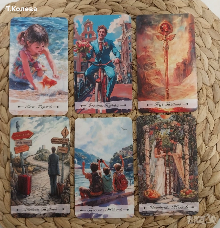 82карти премиум качество с електронна книга и твърда кутия. Размер 12×7см,матова ламинация.