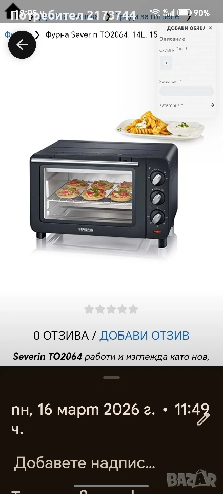Малка Ел.фурна17L, снимка 1 - Форми - 54137960 Малка Ел.фурна17L, снимка 2 - Форми - 54137960 1/2