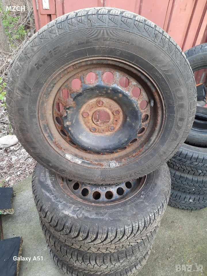 4 броя тенекиени джанти с зимни гуми много хубави 195/65/15. гумите нямат никакви дефекти.