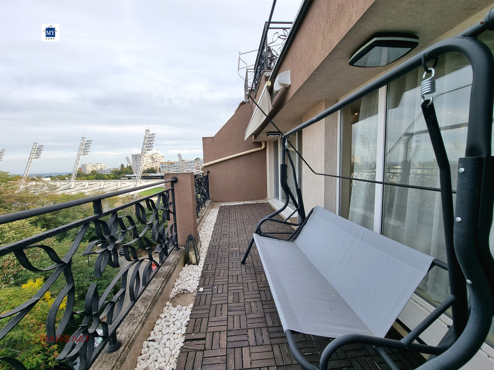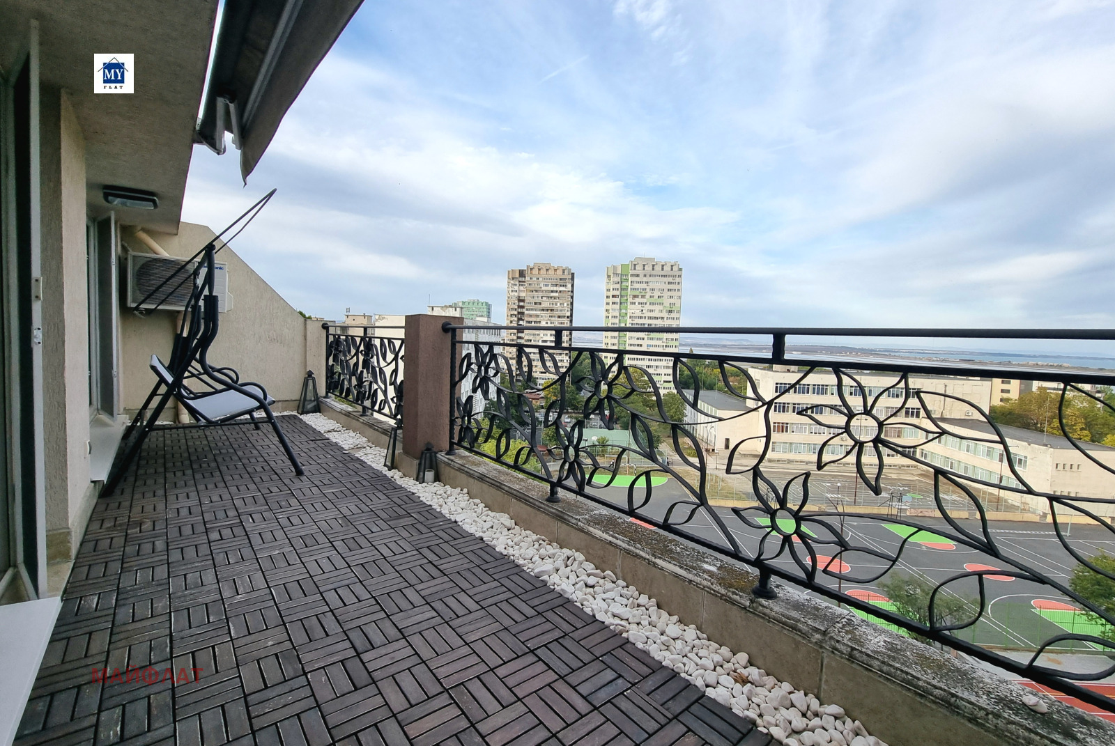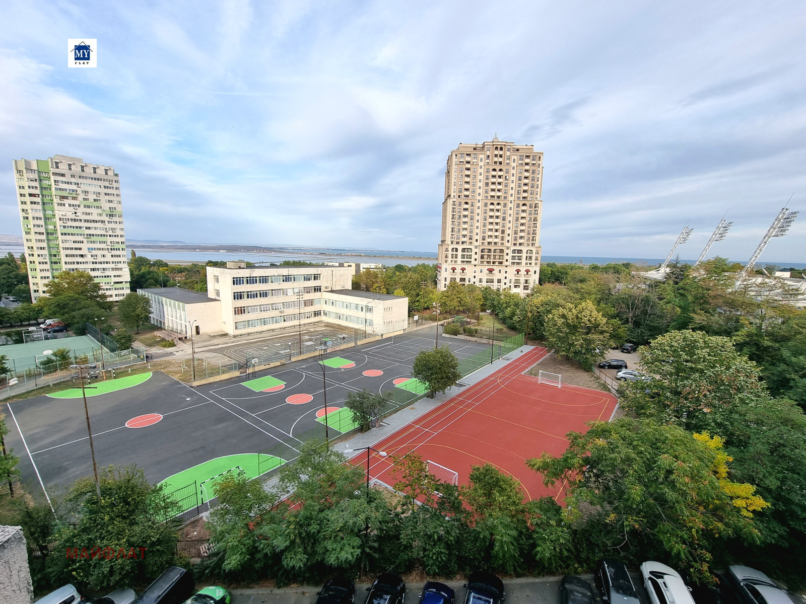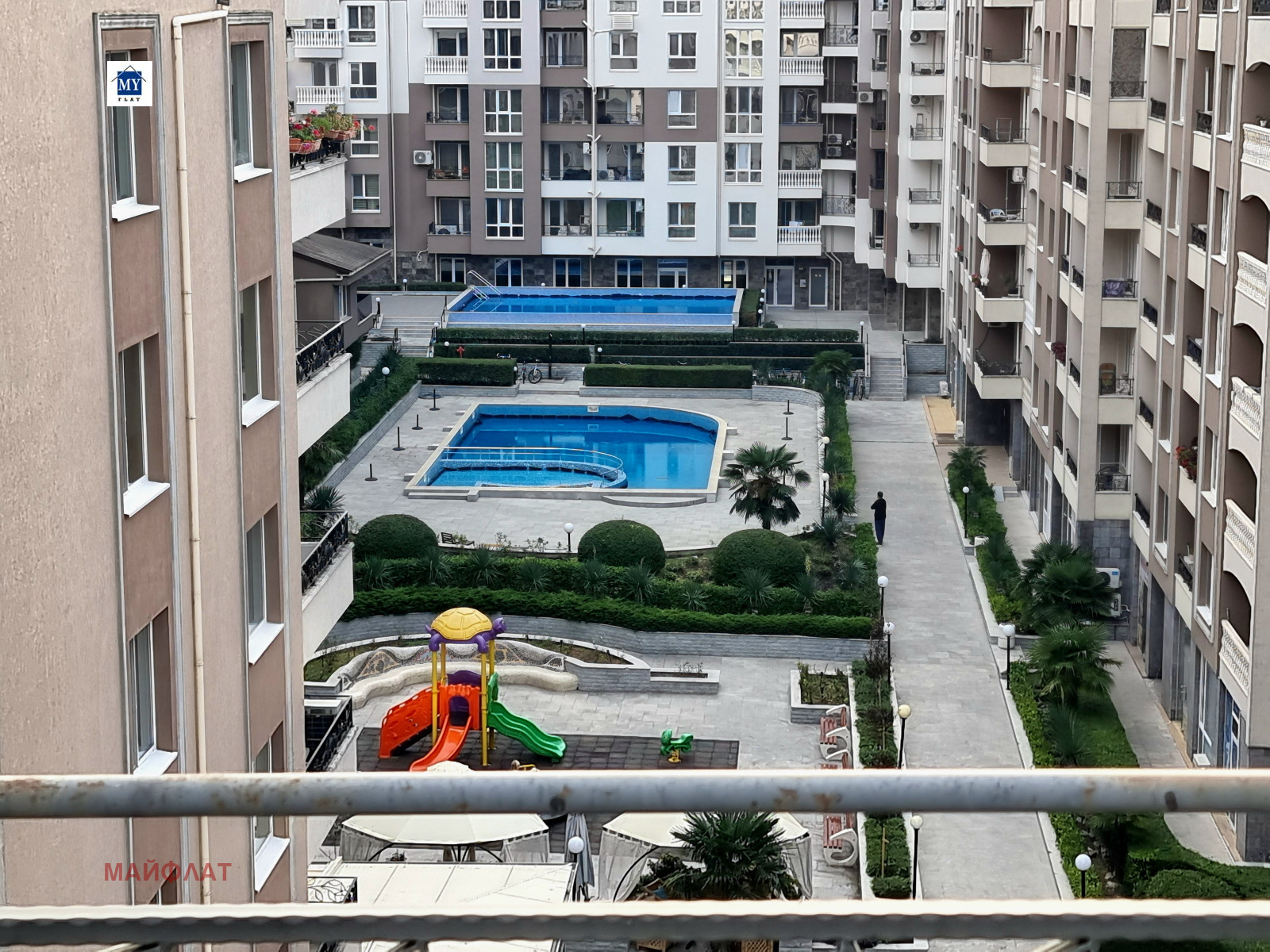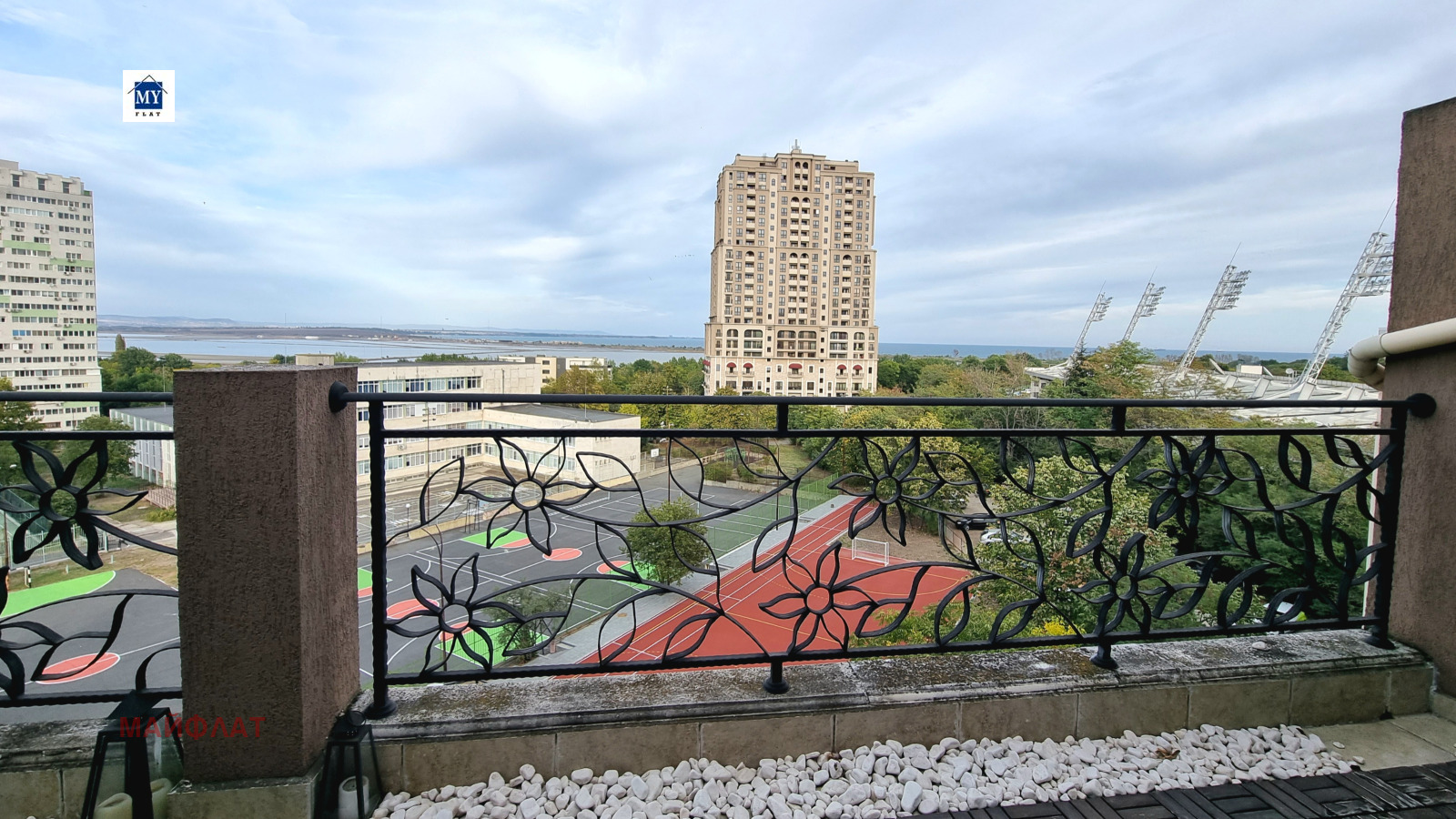 Апартаментът се намира в затворен комплекс Перла - ж.к. Зорница. На територията на комплекса има изградени и функциониращи два басейна, ресторант, магазин, фитнес, козметичен салон, детска площадка.Комплексът е от затворен тип с контролиран достъп и охрана. В близост се намират спирки на градския транспорт, морската градина на Бургас, Окръжна болница, множество магазини и др.