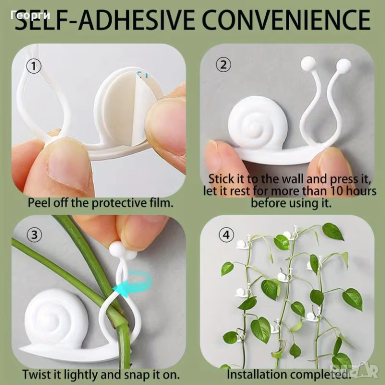 Може да се остави да виси от хладилник, например като на фото 3, или да се катери по опора, като на фото 2.