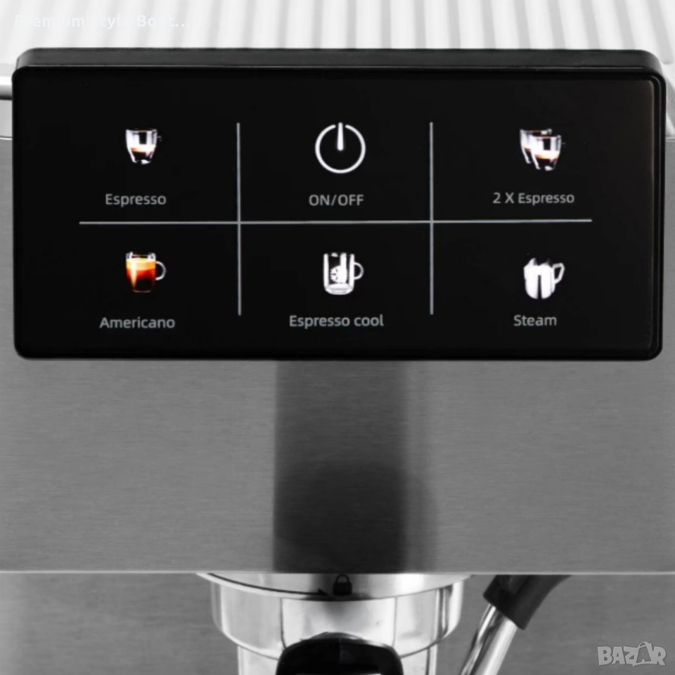 Работно налягане: 20 бара Система за нагряване: Thermoblock (бързо загряване ~20 секунди) Контрол на температурата: PID пропорционален интегрален драйвер Размери: приблизително 30,5 х 33,7 х 13,01 см Мощност: 1350 W Захранване: 220-240V~ 50Hz, Тип щепсел: E/F, дължина на кабела: 82 см Капацитет на резервоара: 1,5 л (подвижен, прозрачен) Интерфейс: LCD сензорен панел с икони за избор на напитки Функции: единично/двойно еспресо, американо, студено еспресо, парна функция за мляко Защити: защита от прегряване и свръхналягане, автоматично изключване след 10 минути Материал: корпус от неръждаема стомана, двойно-чучест портафилтър, платформа за затопляне на чаши