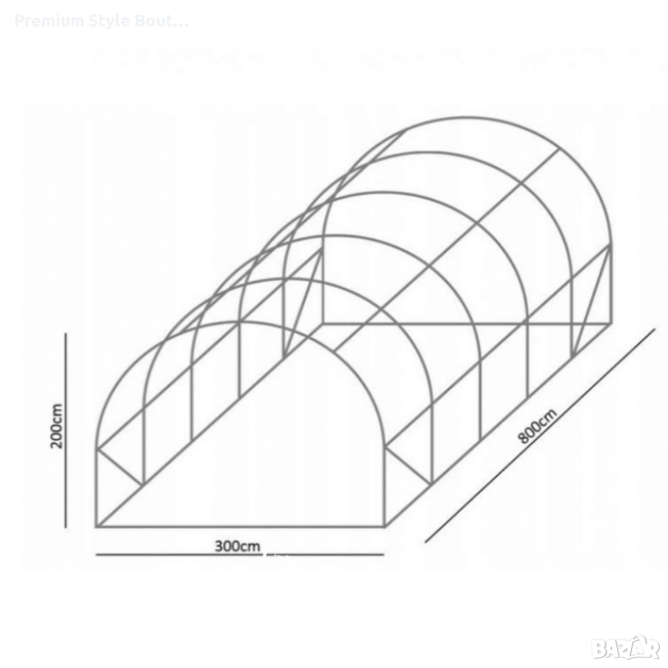 Предлагат се няколко модела с различни габарити и параметри, описани подробно по-долу: Модел 2-сегментен: Размери в сглобено състояние 2 x 2 x 2 м, площ 4 м², диаметър тръби 19 мм, дебелина 0,6 мм. Включени винтове, конектори и тапи. Модел 3-сегментен: Размери 3,5 x 2 x 2 м и 4 х 2 х 2,5м брой сегменти 3, диаметър 19 мм, дебелина 0,6 мм. Комплект със съединители, винтове и капачки. Модел 4-сегментен: Размери 6 x 3 x 2 м, брой сегменти 4, диаметър на тръбите 25 мм, дебелина 0,65 мм, материал стомана поцинкована от двете страни. Включени винтове, конектори и капачки. Модел 5-сегментен: Размери 8 x 3 x 2 м, брой сегменти 5, диаметър 25 мм, дебелина 0,65 мм. Подсилени 2 горни тръби за по-голяма здравина. Включени винтове, конектори и крайни капачки.