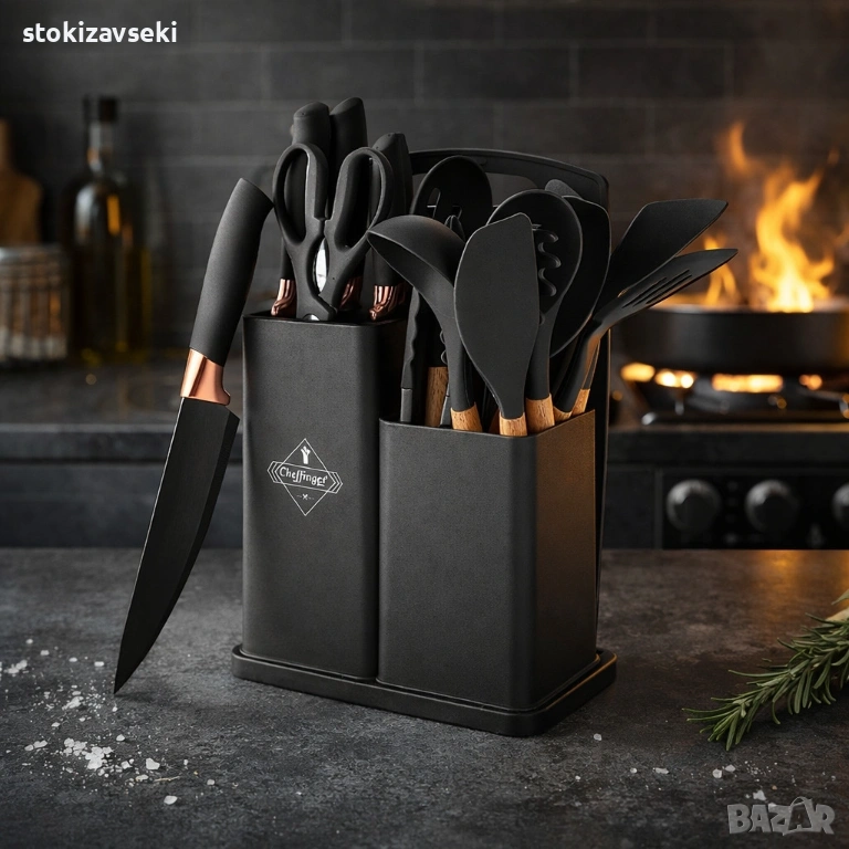 Кухненски комплект от 19 части Cheffinger KSUT01 - ножове, силиконови прибори, поставка и дъска , снимка 1 - Прибори за хранене, готвене и сервиране - 54138568 Кухненски комплект от 19 части Cheffinger KSUT01 - ножове, силиконови прибори, поставка и дъска , снимка 2 - Прибори за хранене, готвене и сервиране - 54138568 Кухненски комплект от 19 части Cheffinger KSUT01 - ножове, силиконови прибори, поставка и дъска , снимка 3 - Прибори за хранене, готвене и сервиране - 54138568 Кухненски комплект от 19 части Cheffinger KSUT01 - ножове, силиконови прибори, поставка и дъска , снимка 4 - Прибори за хранене, готвене и сервиране - 54138568 Кухненски комплект от 19 части Cheffinger KSUT01 - ножове, силиконови прибори, поставка и дъска , снимка 5 - Прибори за хранене, готвене и сервиране - 54138568 Кухненски комплект от 19 части Cheffinger KSUT01 - ножове, силиконови прибори, поставка и дъска , снимка 6 - Прибори за хранене, готвене и сервиране - 54138568 1/6