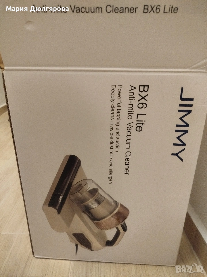 JIMMY BX6 Lite е прахосмукачка против акари, която ще ви гарантира чиста и здравословна среда у дома. Ефективно премахва не само видим прах, но и акари, алергени и невидими бактерии, скрити в текстила. Със степен на елиминиране на акари от над 99,9%, сертифицирана от Allergy UK, тя защитава вашето здраве. Мощност: 600W Всмукателна мощност: 15 000 Pa Ниво на шум: ≤78dBA Режими на работа: 2 Филтрация: 6-степенна Функция “тупане”: Да Сензор за откриване на прах и акари: Да Стерилизация чрез нагряване (55℃): Да Стерилизация чрез ултразвук: Да Стерилизация чрез UV: Да Отделяне на отрицателни йони: Не Бърза и безплатна доставка Безплатно връщане до 14 дни 2 години гаранция В наличност Добавяне в количката Код: 6946499314058 Категории: BX6 Lite, Прахосмукачки против акари Описание Мощен 600 W мотор, висока прецизност JIMMY BX6 Lite разполага с ново поколение модернизиран високопрецизен мотор с висока смукателна мощност от 600 W. С ниско ниво на шум, енергоспестяващ и ефективен. Патентована система за 6-степенна филтрация Благодарение на 6-степенна система за филтрация с технология циклон, прахът и твърдите частиците ефективно биват отделени от въздуха. По този начин се гарантира непрекъсната силна смукателна мощност на прахосмукачката, както и здравословна среда в дома ви, без възможност от вторично замърсяване и симптоми на алергии. Два режима на работа Двата режима на работа позволяват на уреда да се адаптира към вашите нужди за почистване: места или тъкани, без да ги уврежда. Стерилизация чрез висока температура (55℃) Само за 5 секунди работната температурата достига 55℃, като по този начин прониква в дълбочина в дивани и матраци. Бързо унищожава акарите и бактериите, за да можете да се насладите на комфорт дори във влажни дни. UV стерилизация Благодарение на иновативната технология за UV стерилизация, BX6 Lite елиминира прах, акари и бактерии в дълбочина. Прахосмукачката излъчва ултравиолетови вълни с дължина от 253 nm, които унищожават 99,99% от праховите акари. Стерилизация чрез ултразвук Ултразвукът унищожава нервите на акарите, предотвратява размножаването им и ефективно ги елиминира за дълъг период от време. Ултразвуковата технология е напълно безвредна за деца, бебета и домашни любимци. Патентованата композитна четка Иновативната въртяща се четка с меки гумени ленти възпроизвежда силни и бързи вибрации имитиращи тупане. С нейна помощ, BX6 Lite бързо и лесно събира фин прах и прахови акари в дълбочина, без да уврежда тъканите. Широк смукателен отвор Благодарение на широкия смукателен отвор с размер 220 милиметра, ефективността на почистване е изключително висока. Лесно почистване Всички компоненти в контейнера за прах могат да се разглобят и измият лесно и удобно. Сертифицирана от Allergy UK Foundation Уредът е тестван и сертифициран от Фондацията на Великобритания за алергии, степента на елиминиране на акари е над 99,9%.