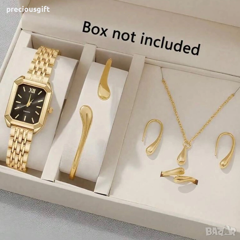 Дамски комплект от 5 части - часовник, колие, гривна, обеци и пръстен → Обява 54139058