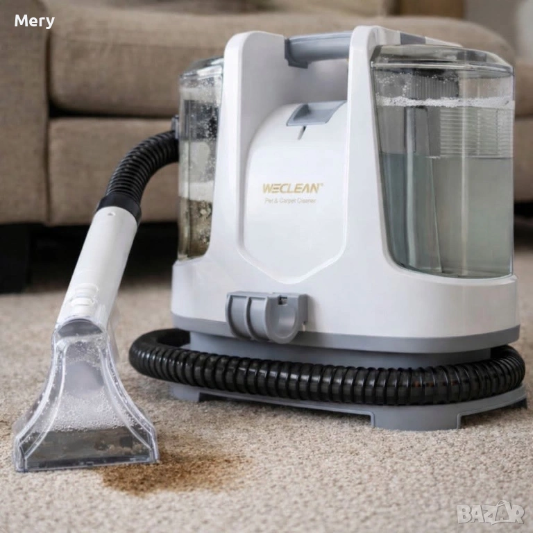 Перяща прахосмукачка за тапицерии и петна . Тип почистване: локално дълбоко пране – Spray & Suction (пръскане и изсмукване) + четка