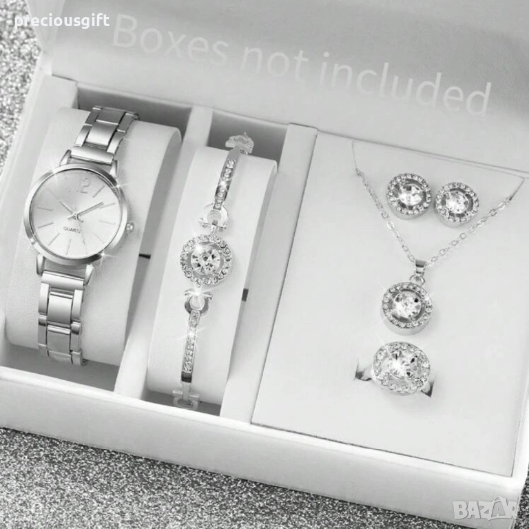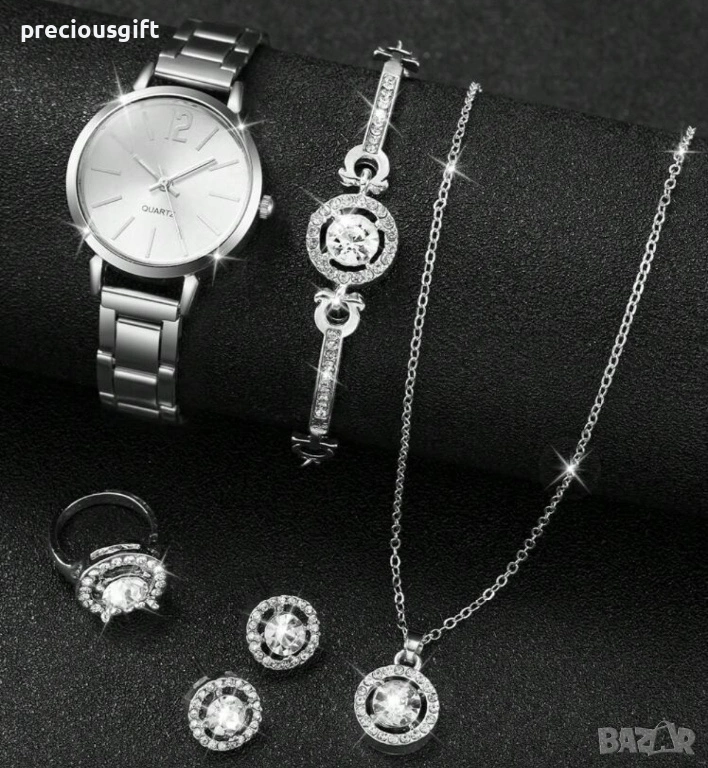 Комплект часовник, колие, гривна, обеци и пръстен, снимка 1 - Дамски - 54139213 Комплект часовник, колие, гривна, обеци и пръстен, снимка 2 - Дамски - 54139213 Комплект часовник, колие, гривна, обеци и пръстен, снимка 3 - Дамски - 54139213 Комплект часовник, колие, гривна, обеци и пръстен, снимка 4 - Дамски - 54139213 Комплект часовник, колие, гривна, обеци и пръстен, снимка 5 - Дамски - 54139213 Комплект часовник, колие, гривна, обеци и пръстен, снимка 6 - Дамски - 54139213 1/6