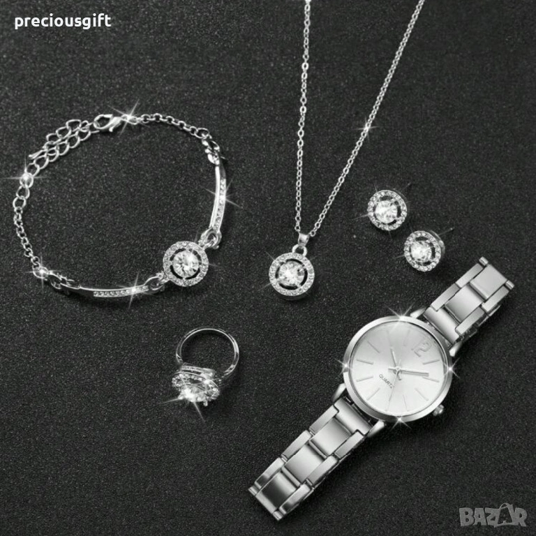 Комплект часовник, колие, гривна, обеци и пръстен