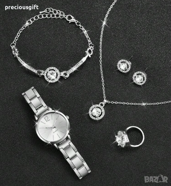 Комплект часовник, колие, гривна, обеци и пръстен → Обява 54139213