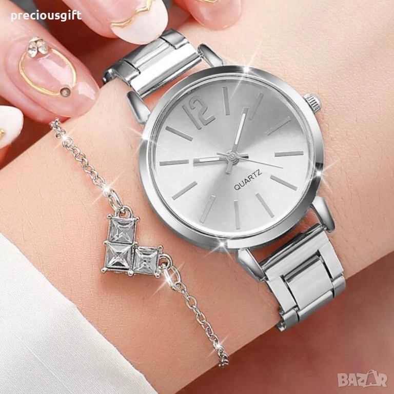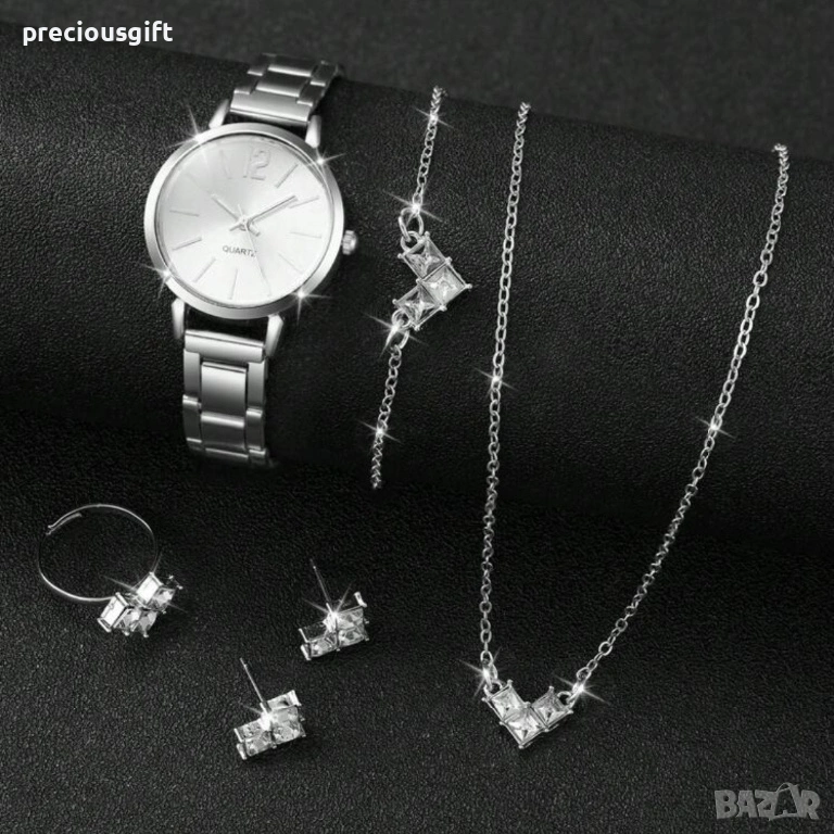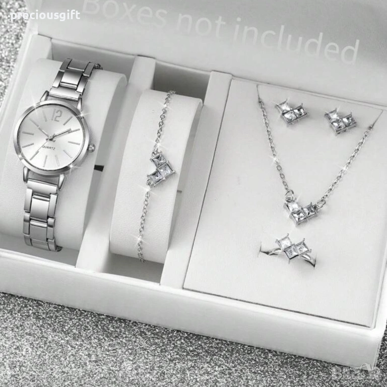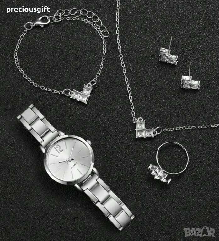 Дамски комплект от 5 части - часовник, гердан, гривна, пръстен и обеци → Обява 54139236