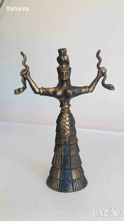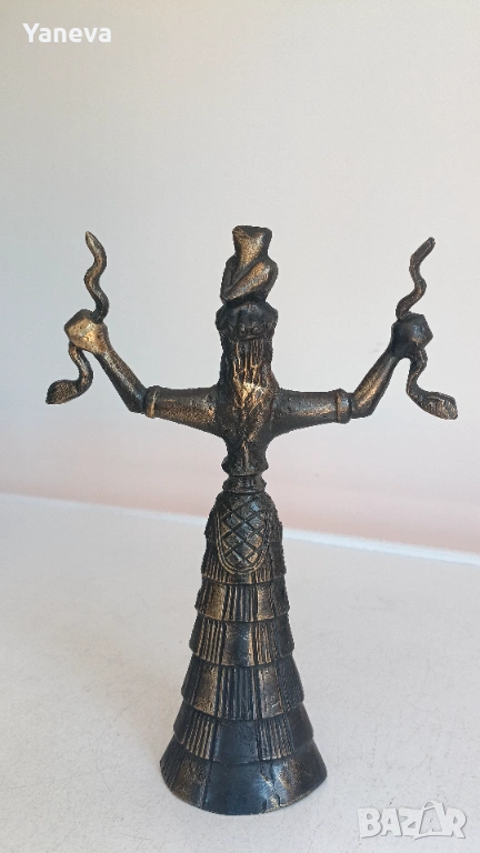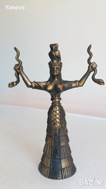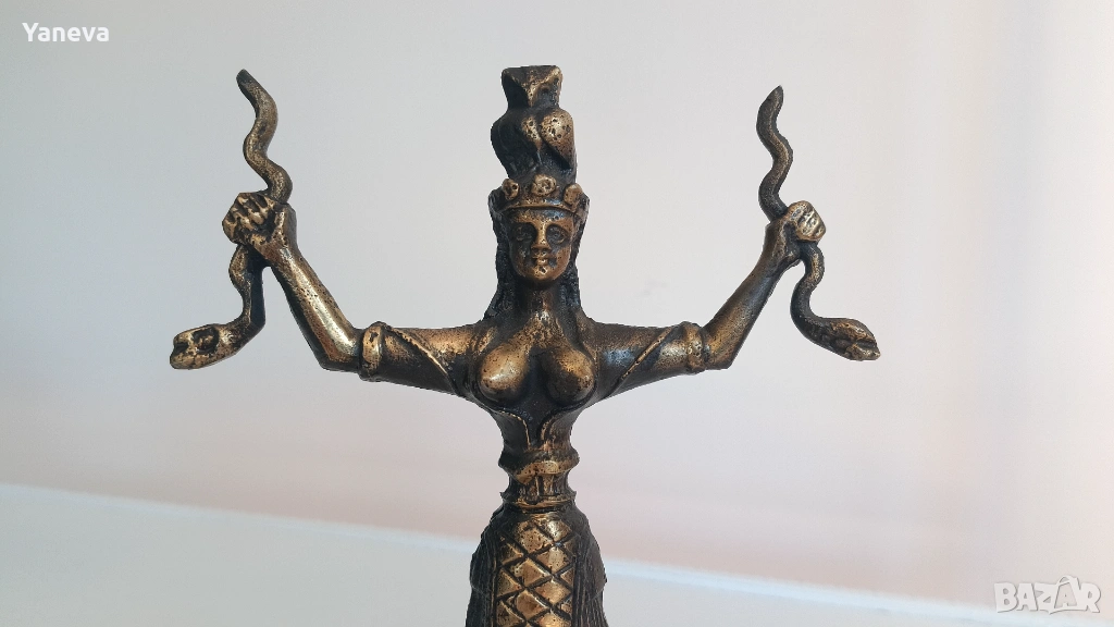 Бронзова статуетка на Минойска богиня със змиите , свързана с плодородието и природата. → Обява 54139256