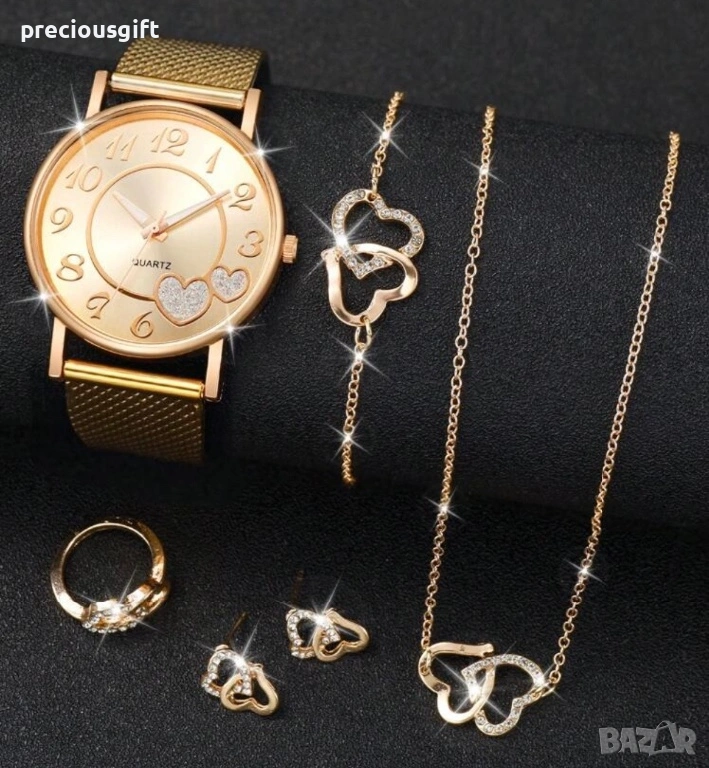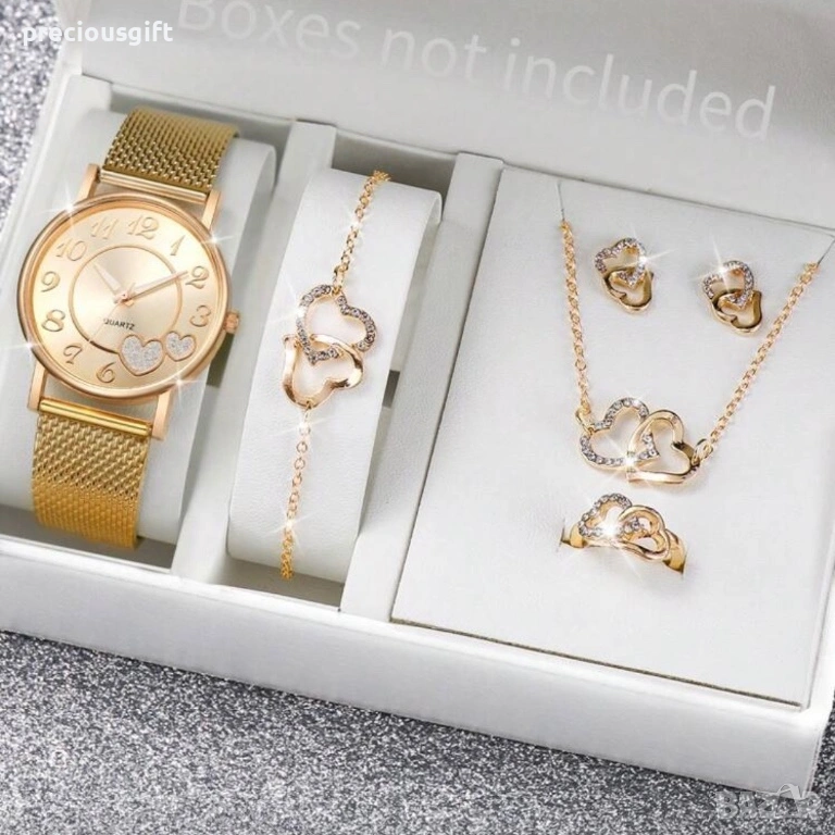 Комплект с часовник, колие, гривна, обеци и пръстен, снимка 1 - Дамски - 54139266 Комплект с часовник, колие, гривна, обеци и пръстен, снимка 2 - Дамски - 54139266 Комплект с часовник, колие, гривна, обеци и пръстен, снимка 3 - Дамски - 54139266 Комплект с часовник, колие, гривна, обеци и пръстен, снимка 4 - Дамски - 54139266 Комплект с часовник, колие, гривна, обеци и пръстен, снимка 5 - Дамски - 54139266 Комплект с часовник, колие, гривна, обеци и пръстен, снимка 6 - Дамски - 54139266 1/6