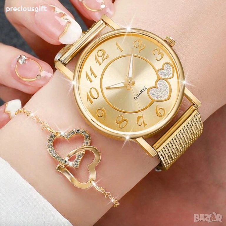 Комплект с часовник, колие, гривна, обеци и пръстен → Обява 54139266