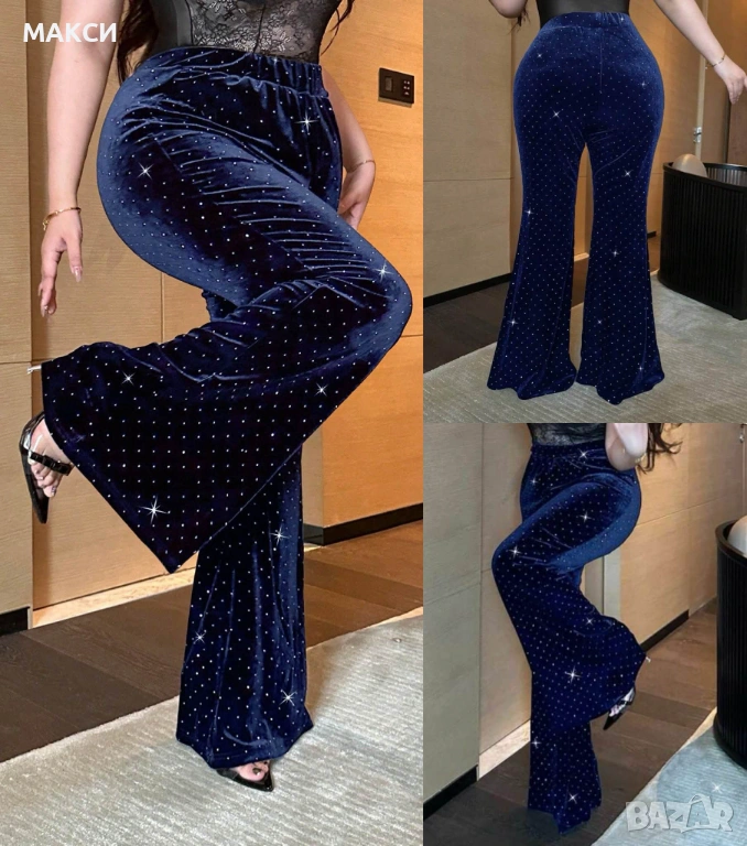 Макси празничен модерен силно еластичен клин-панталон Чарлстон в кралско синьо + декорация точки със → Обява 54139397