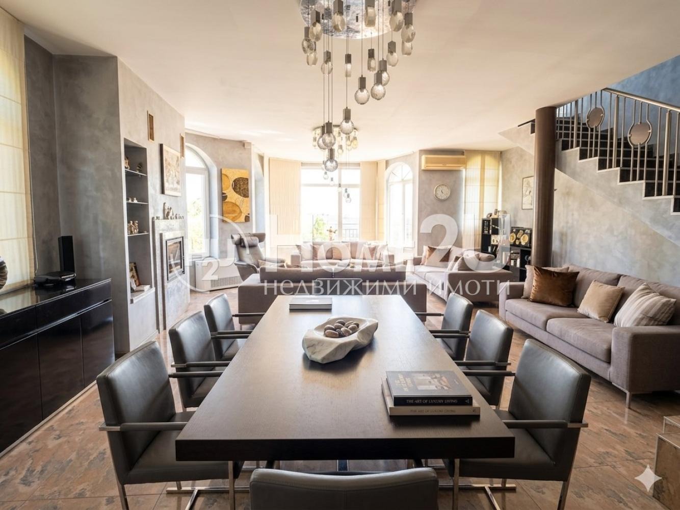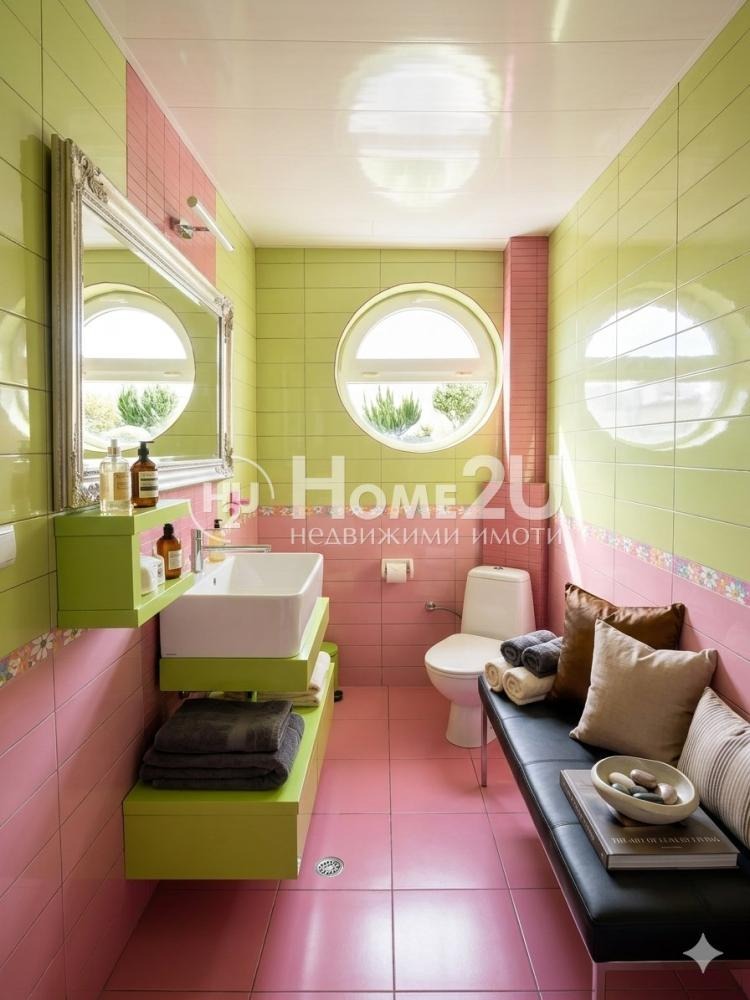 Още с влизането усещате, че това не е просто къща, а пространство със собствен характер. Дневната е сърцето на дома внушителна, светла, с френска камина и детайли като венецианска мазилка и италиански гранитогрес, които придават дълбочина и класа. Всичко е подбрано не просто да изглежда добре, а да се усеща правилно.