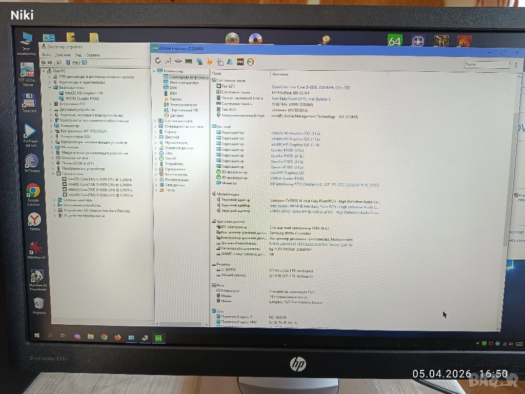 Продавам перфектно работещ компютър с 4-ядрен процессор Intel Core i5-6500, с две видеокарти: Intel HD Graphics 530 и дискретна видео карта nVidia Quatro P1000 c 4Gb GDDR5 памет. Компютър е подходящ както за обучение графичен дизайн, така и за 3D графика и игри. Работи бързо и тихо. Идва в комплект тонколони (перфектно за филми и музика). Компютър изчистен напълно и подменена термопаста за процесор. Използваем е за музика, филми, интернет, може да гледа видeo 4К от Youtube. Машинката бе купена преди две години за работа в офиса за колега дизайнер, но поради стечения на обстоятелствата остана неизползвана. Компютър е перфектен за офис, обучение или домашна работа.