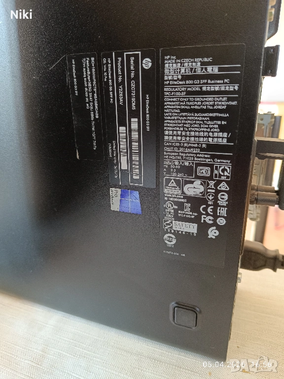 Сист. блок: HP EliteDesk 800 G3 SFF