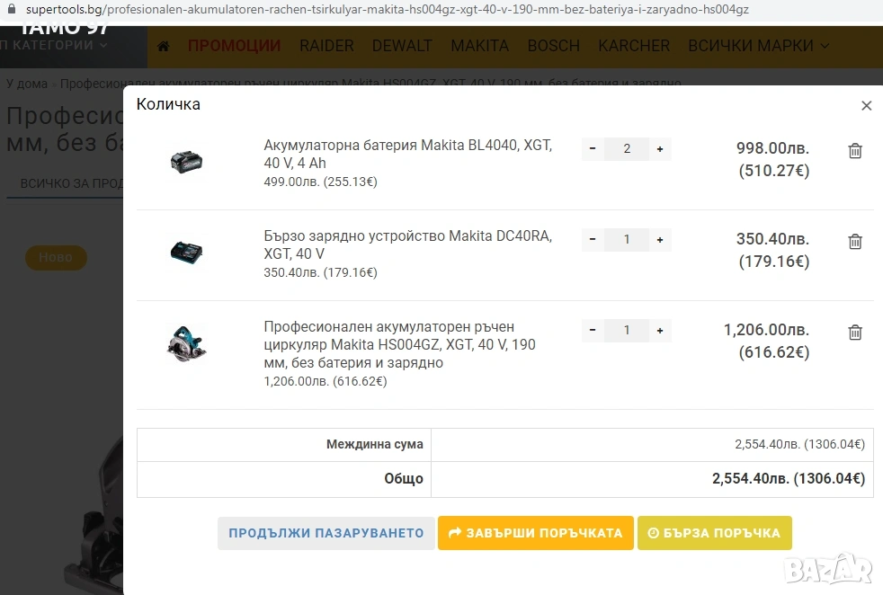 Магазинската цена на комплекта както го продавам е: 1 306евро