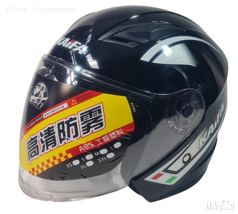 Оборудвана с прозрачна слюда за ясна видимост и вентилационна система с въздушни отвори, каската осигурява комфорт дори при по-дълги пътувания.