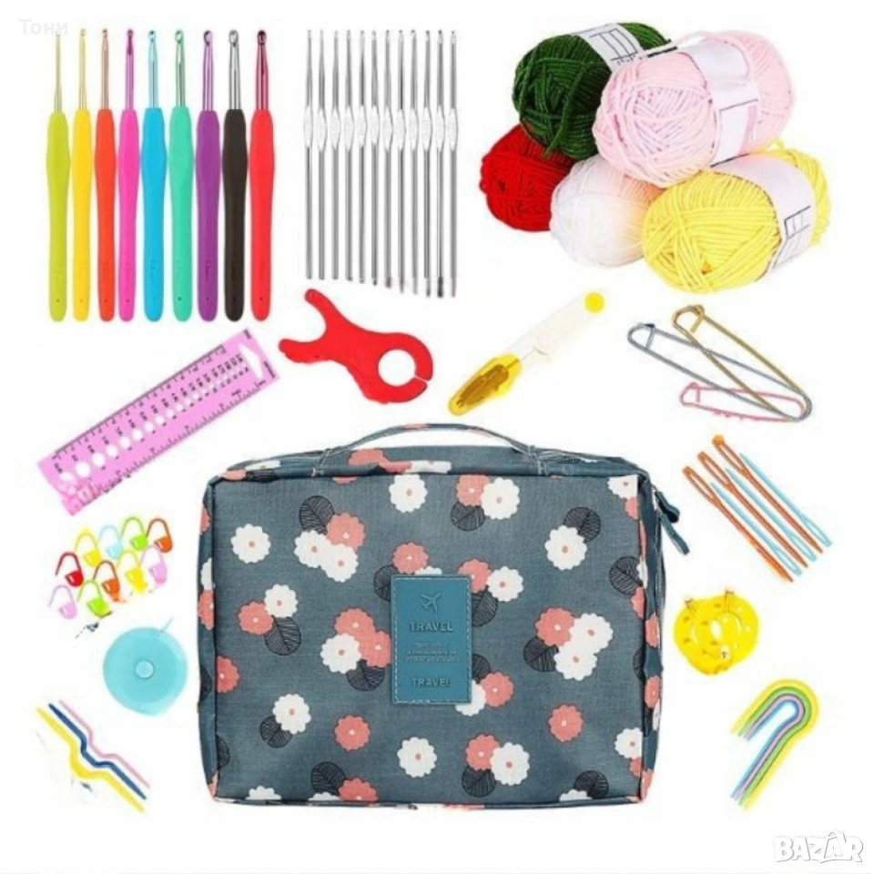 Комплект аксесоари за плетене, 58 части, алуминиеви куки – Пълен сет за начинаещи и напреднали → Обява 54140137
