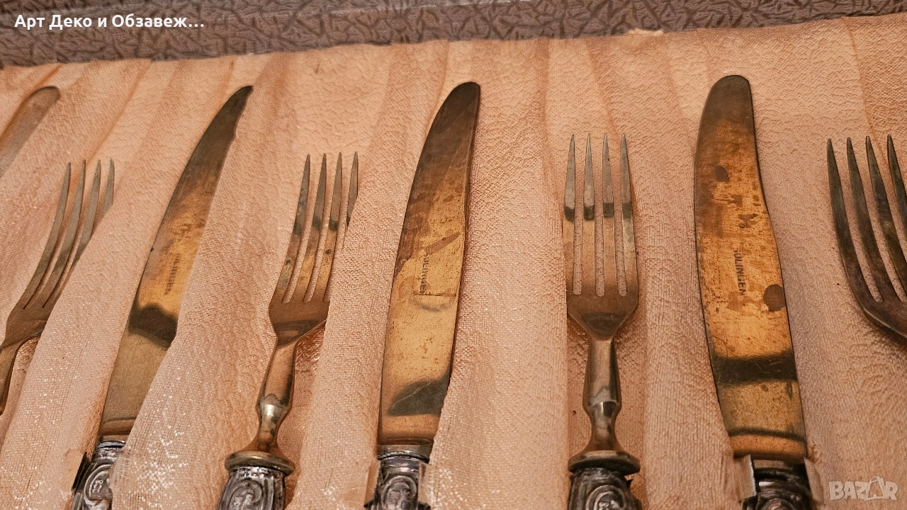 Сребърни прибори за сладко на Солинген остриета пизлатени дръжките маркирани с проба 800 6бр.вилички и 6бр.ножчета вървят с кутия.