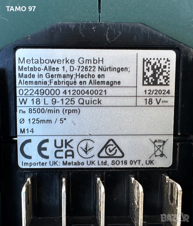 METABO W 18 L 9-125 Quick - Акумулаторен ъглошлайф 18V 5.5Ah неразличим от нов!