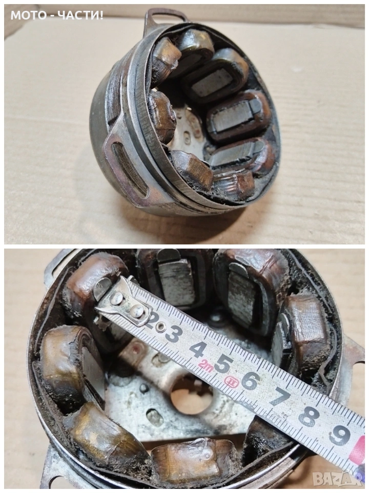- Статора е в перфектно състояние, единствено му липсва кондензатора, за 65мм ротор е, продава се така, както се вижда на снимките, всичко е снимано подробно!