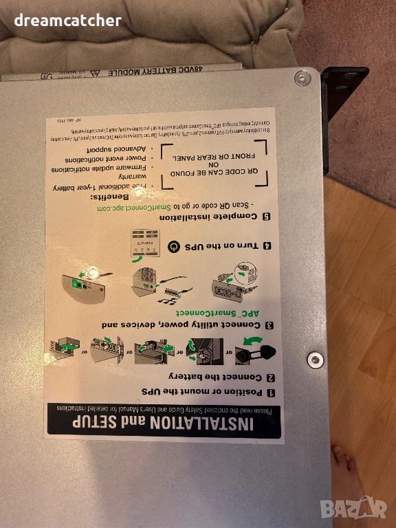 UPS-a е в прекрасно състояние, но батериите са за смяна. UPS e купуван като нов, и е на 1 комплект батерии, а такъв компект без шасито за батериите RBC43 е около 120-150 евро с ОЕМ батерии. Към UPS-a има и Network Management Card AP9631, лайсините за монтаж на шкаф, кабелите които идват към него, документацията, фронталния панел и кашона. Цената е наполовина от магазина.