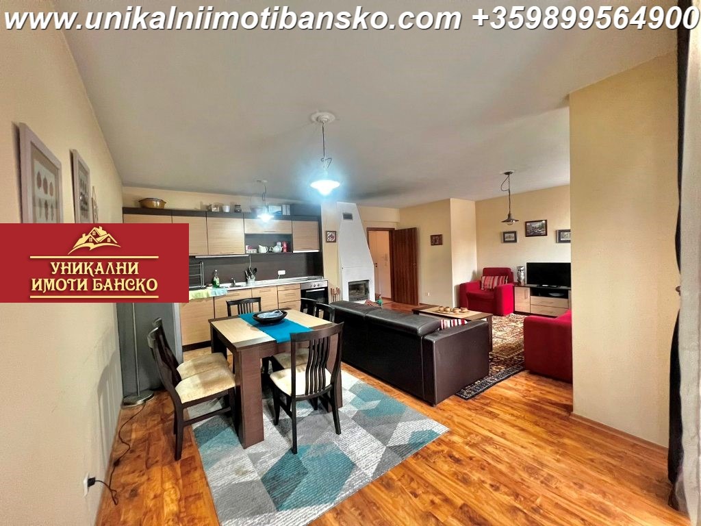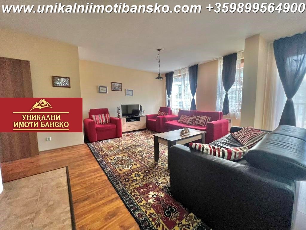www.unikalniimotibansko.com Агенция 'Уникални Имоти Банско' отдава под наем НАПЪЛНО ГОТОВ ЗА НАНАСЯНЕ ТРИСТАЕН АПАРТАМЕНТ, КОЙТО Е РАЗПОЛОЖЕН В КОМПЛЕКС НА ПЕШЕХОДНО РАЗСТОЯНИЕ ОТ СКИ ПЪТЯ - НА ОКОЛО 3-4 МИНУТИ ПЕША! Апартаментът е разположен на 2-ри етаж, като е съставен от входно антре, три самостоятелно и НЕпреходно разположени стаи (две спални и всекидневна) и две бани, като едната е самостоятелно разположена, а другата е в една от спалните. Всекидневатана разполага с камина на дърва, оборудван кухненски бокс, трапезна маса за хранене и дивани с холни масичка. Двете спални разполага с по едно голямо двойно легло и гардероб. И трите стаи имат собствени тераси. Жилището разполага с всичко необходимо за едно домакинство.