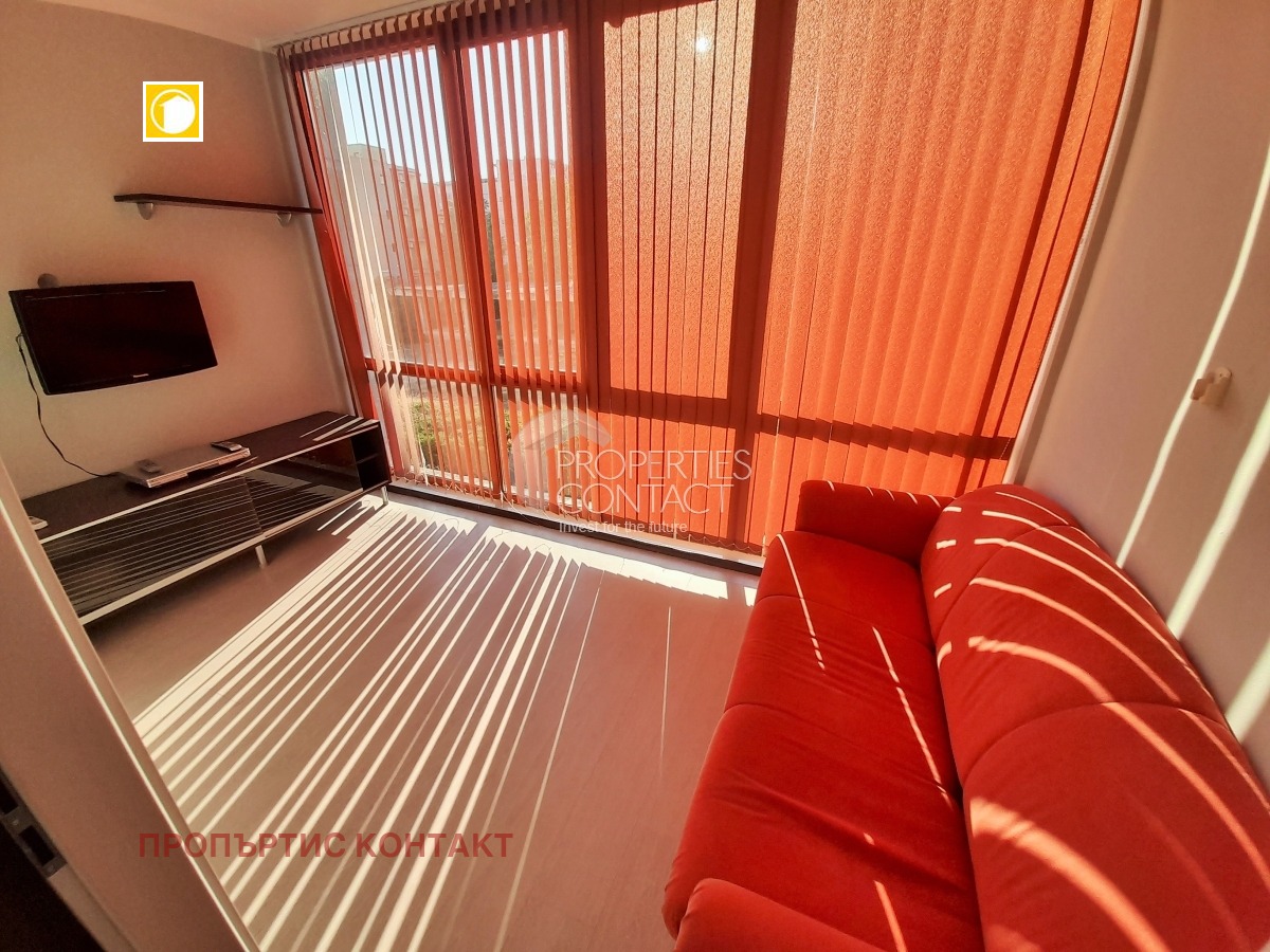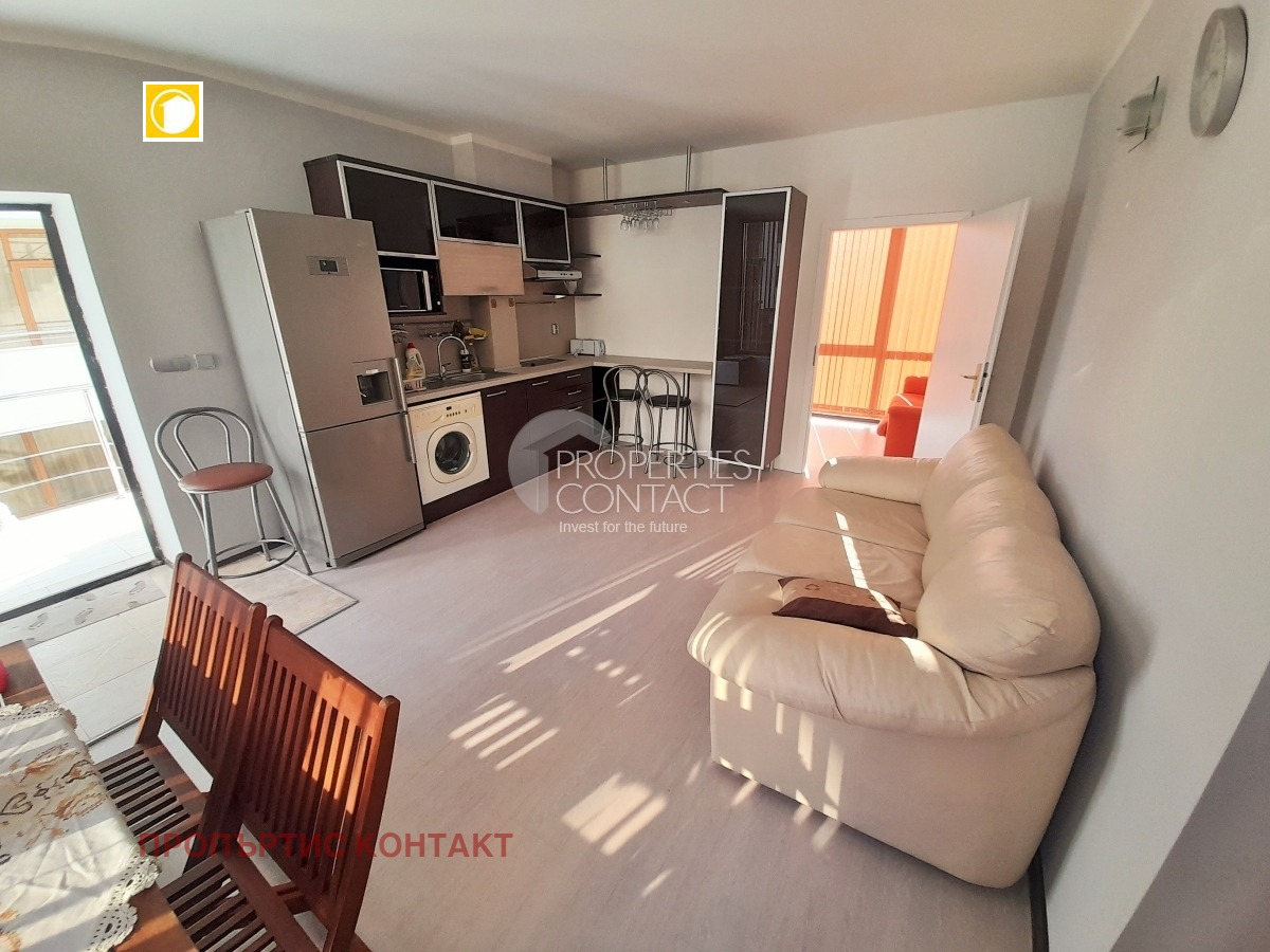 Предлага се обзаведен тристаен апартамент с балкон и достъп до двор в комплекс „Еден“, разположен в западната част на Слънчев бряг – тиха и спокойна зона с отлична инфраструктура и удобства. Имотът е идеален както за целогодишно живеене, така и за инвестиция с възможност за отдаване под наем. Основни характеристики: Тип: тристаен апартамент Площ: 74 кв.м Етаж: 2 Разпределение: светъл хол с кухненска зона и трапезария 2 спални баня с тоалетна балкон с гледка към градината Френски прозорци Състояние: напълно обзаведен Удобства в комплекс „Еден“: Затворена територия Басейн за възрастни Детски басейн Зона за отдих Озеленени площи Контролиран достъп Паркинг Локация и предимства: Само на 5 минути пеша от плажа В близост до магазини, ресторанти и кафенета До супермаркет, аптека, медицински център, банка и поща Удобен транспорт и автобусна спирка Спокоен район, подходящ за семейства