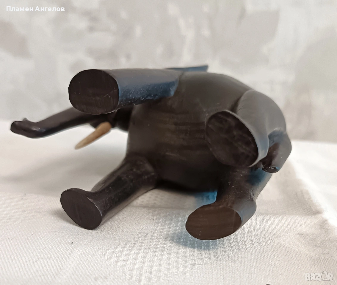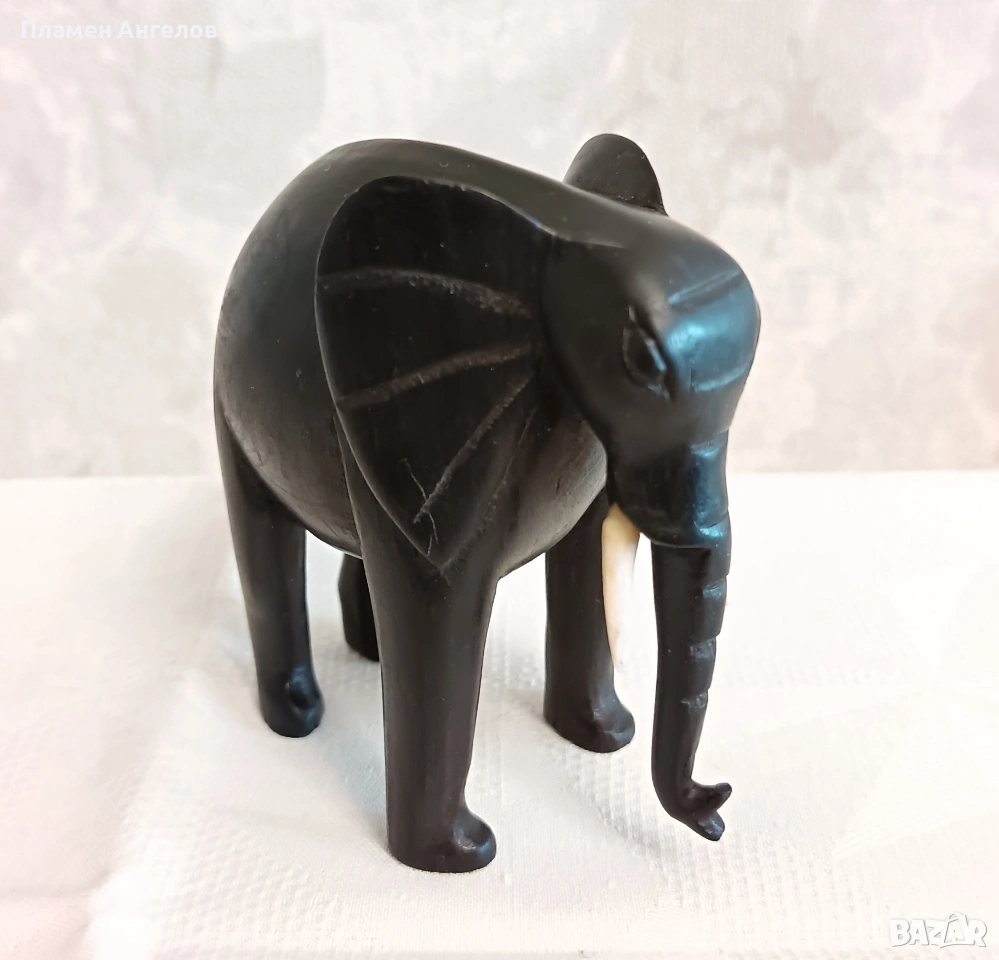 Ръчно резбован слон от абанос и кост - винтидж фигурка.