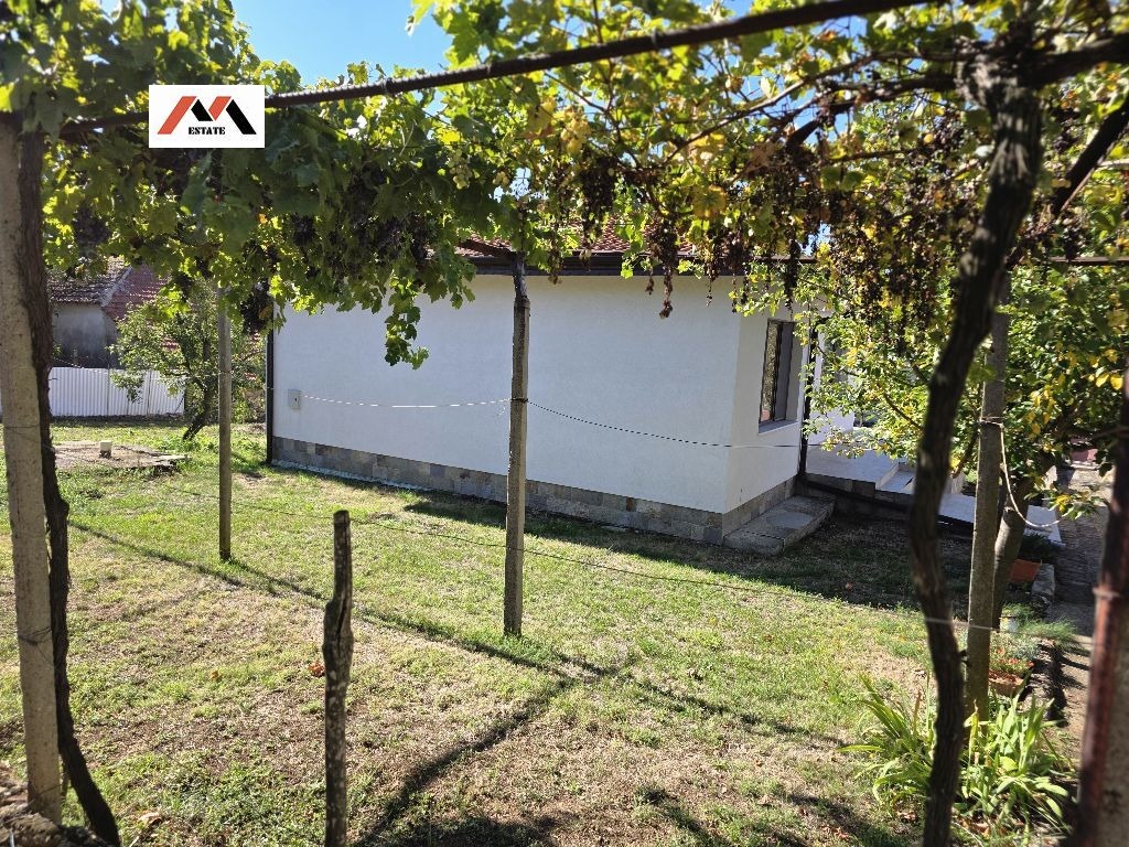 Дворът е озеленен и равен, с лятна кухня, стопански постройки, сонда за вода, септична яма, ВиК и партиди EVN.