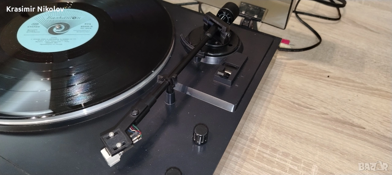 Грамофона е в много добро състояние. Пълен автоматик. С нова доза и игла. Ъпгрейднат с потенциометър за донастройване на оборотите. Здрав капак и панти.