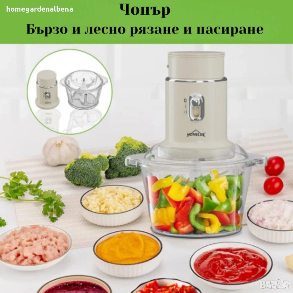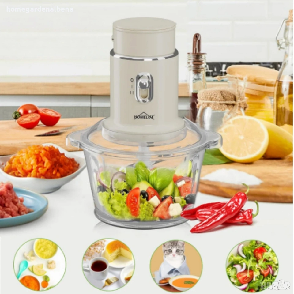 Многофункционален кухненски робот 4в1 Homelux 250W, стъклена купа, блендер, мелачка
