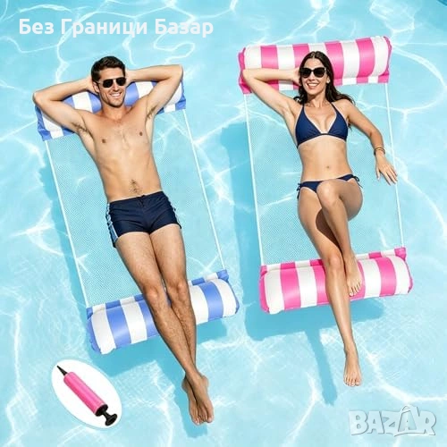 Нови Надуваеми шезлонги за вода 2 броя 4 в 1 плаващ хамак басейн плаж