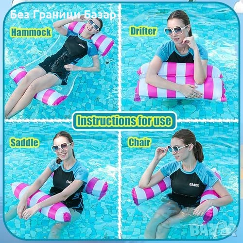 4 в 1 дизайн: хамак, седалка, шезлонг и плаващо легло