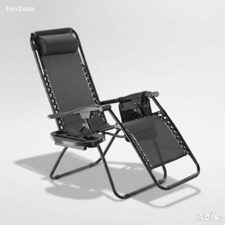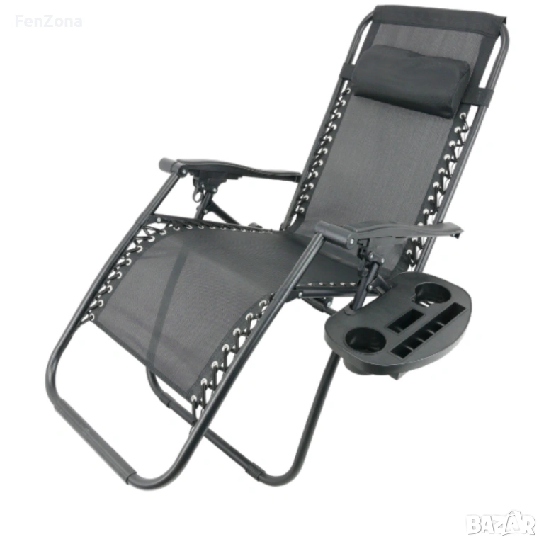 Сгъваем градински шезлонг с възглавница, поставка за напитки и джоб