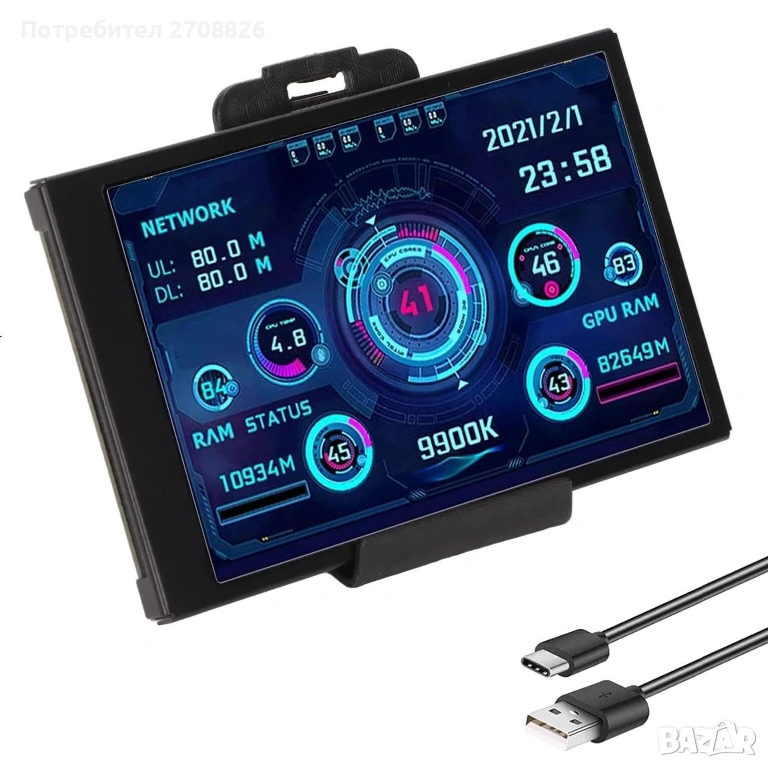 3.5-инчов Вторичен USB Мини Екран с Type-C Док, 3.5" PC CPU RAM Монитор за Данни
