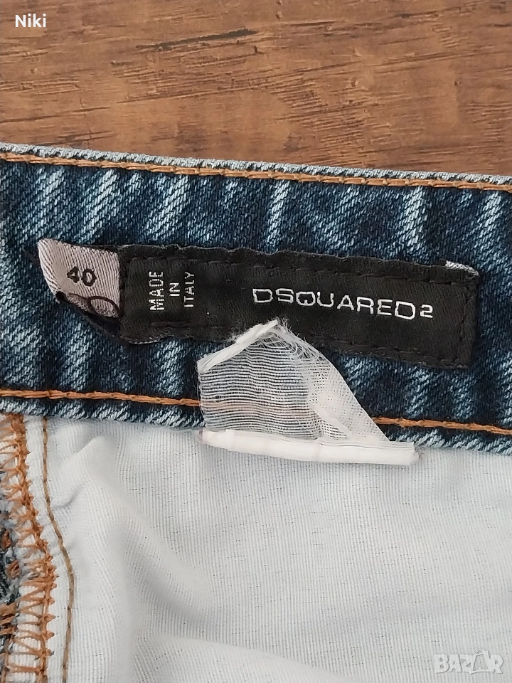 Дамски дънки DSQUARED с размер 40. Талия 38см. Ханш 48см. Дължина крачол от чакала 64см. Крачол от талия 92см.