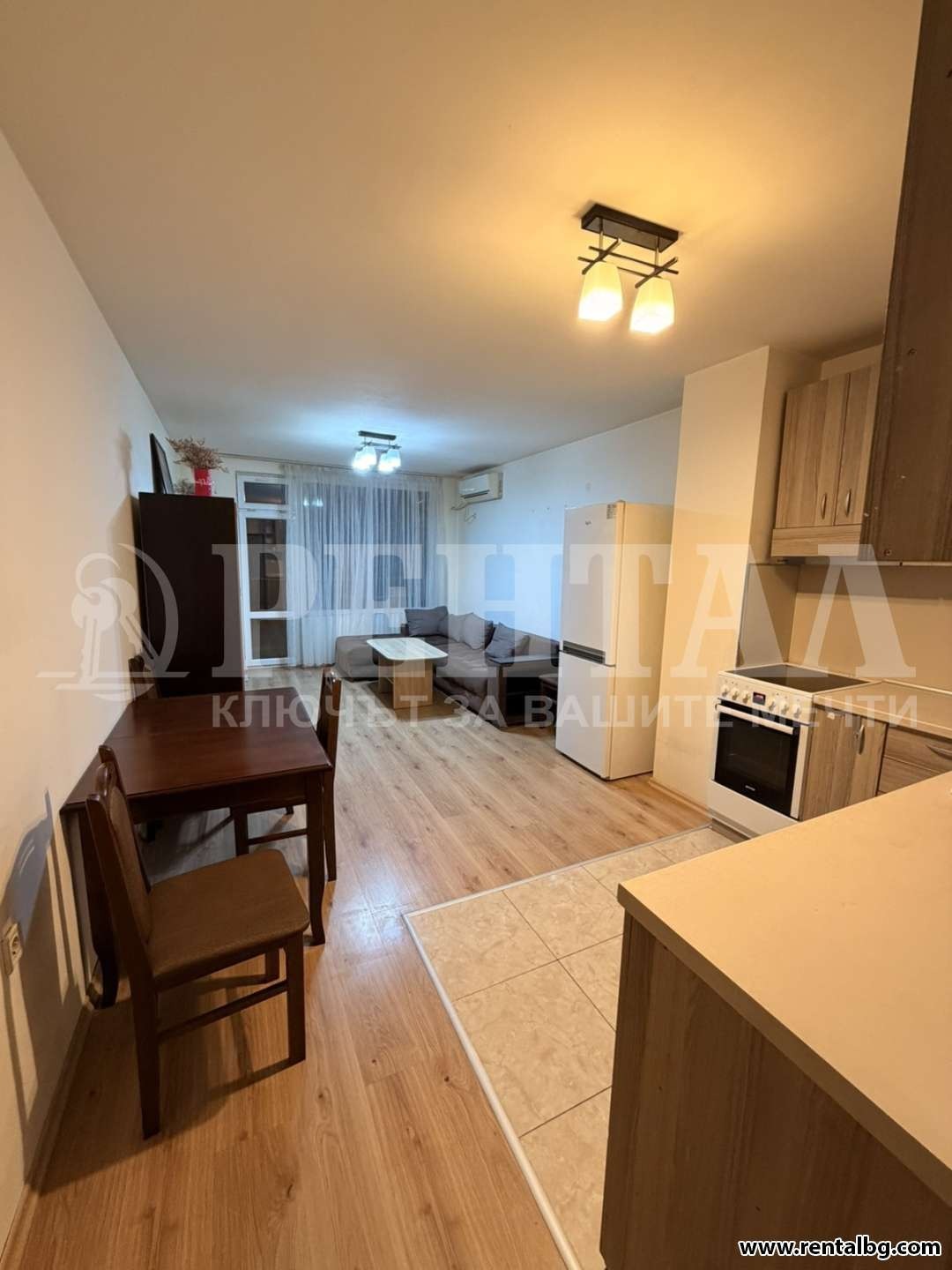 Даваме под наем напълно обзаведен и оборудван тристаен апартамент в кв. Тракия. Разпределение: 2 спални, хол с кухненски бокс, перално помещение, баня с тоалетна, два балкона.