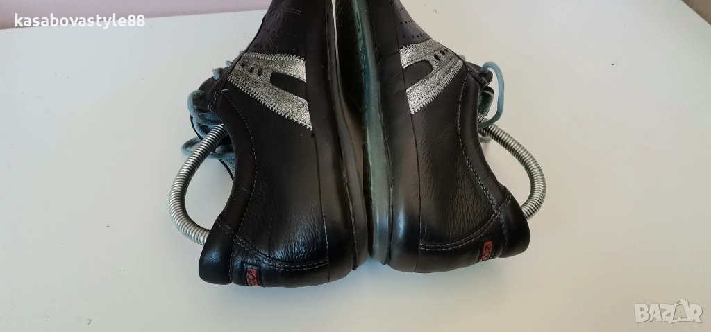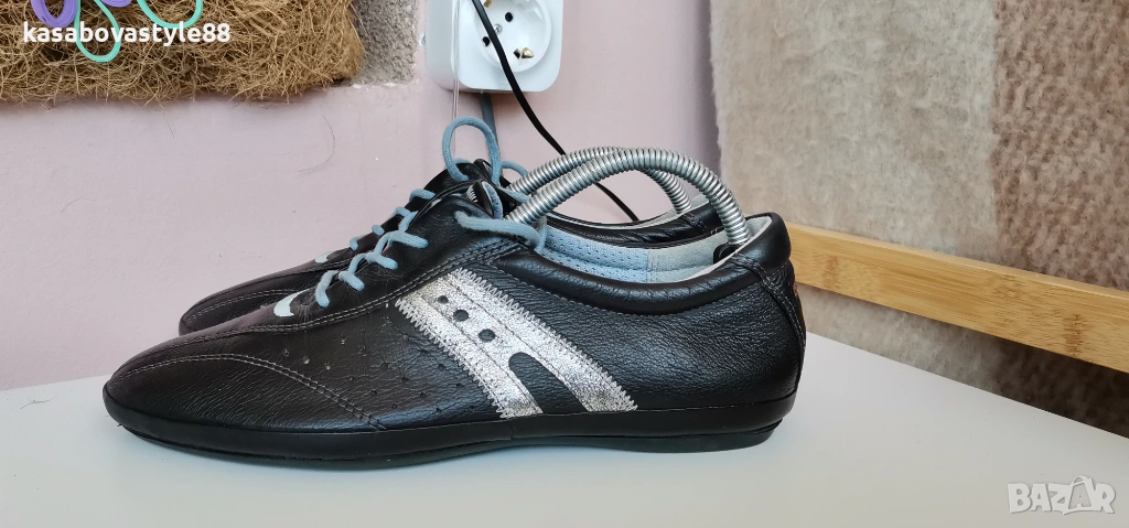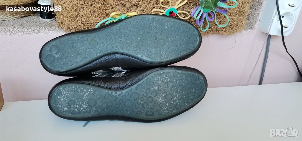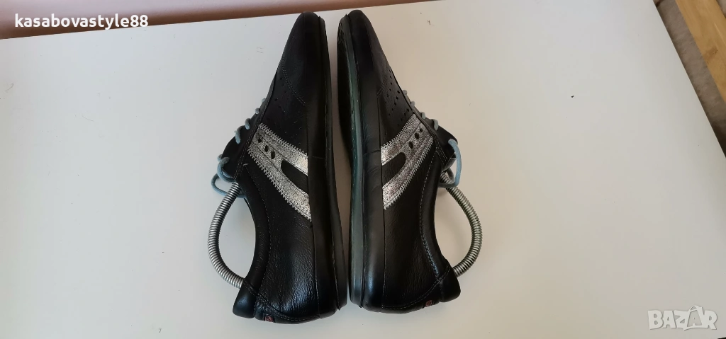 Дамски висококачествени обувки от естествена кожа със сребристи елементи в черен цвят. Моделът е ултра еластичен, олекотен и надежден. Стелката е много мека и при нужда може да се вади. Отговарят на 37. 5н. Дължина стелка 24.5см.