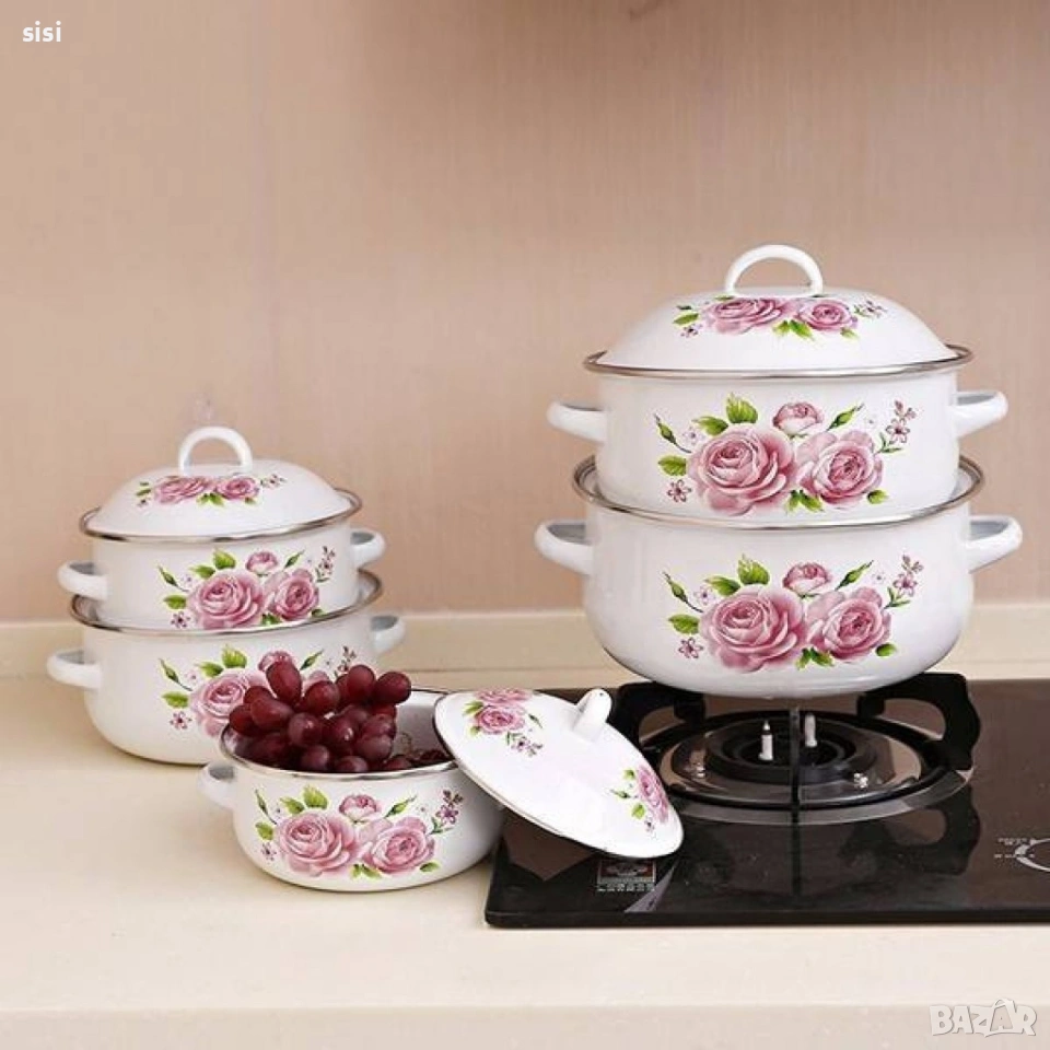 Комплект 5 бр. емайлирани тенджери с незалепващо покритите + капаци ТОП КАЧЕСТВО, снимка 1 - Съдове за готвене - 54143027 Комплект 5 бр. емайлирани тенджери с незалепващо покритите + капаци ТОП КАЧЕСТВО, снимка 2 - Съдове за готвене - 54143027 1/2